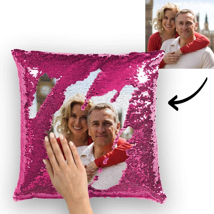 Personalised Photo Sequin Pillow Full Printing Reversible Pillow Anniversary Gift 15.75" x 15.75"