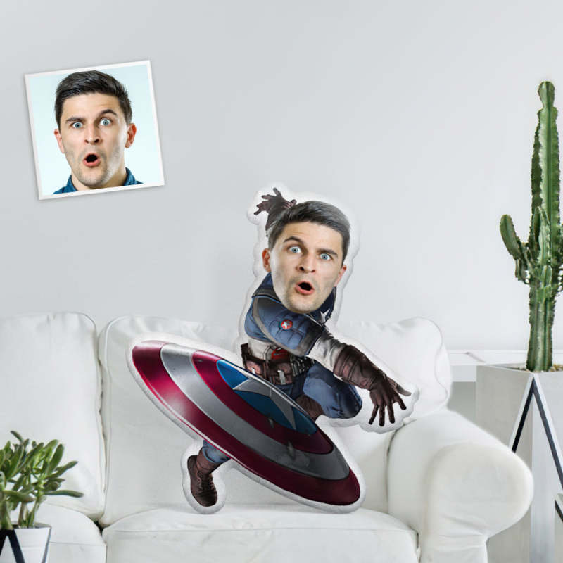 Captain America Photo Pillow Custom Face Photo Minime Doll Unique Personalised Superhero Gifts