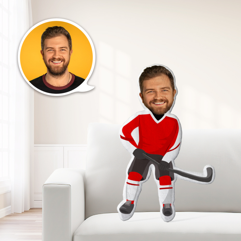 Home / Custom Face Pillow Custom Face Pillow MiniMe Pillow Personalised Photo Pillow Gift Hockey Player Pillow
