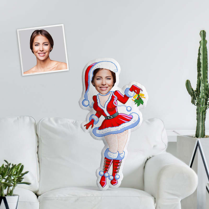 Custom Girl Portrait Santa Minime Throw Pillow Unique Personalised Christmas Girl In Red Boots Throw Pillow For Amazing