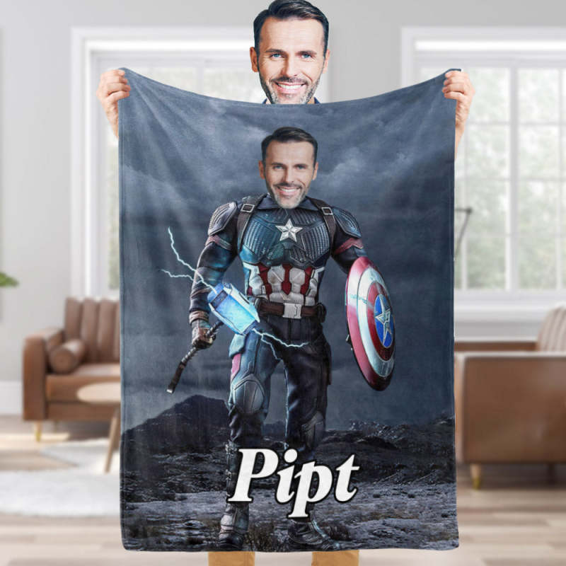 Custom Face Blanket Personalised Photo and Text Hammer Captain America Blanket Minime Blanket Best Gift For Him