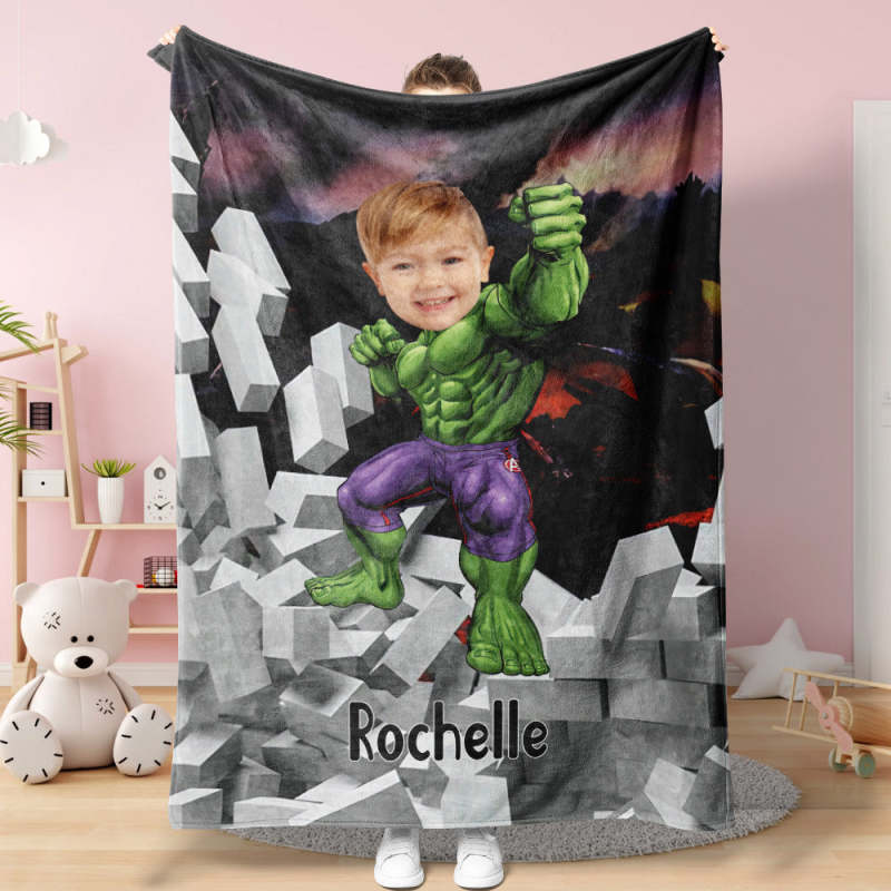 Custom Face Blanket Personalised Photo and Text Muscle Hulk Blanket Minime Blanket Best Gift For Him