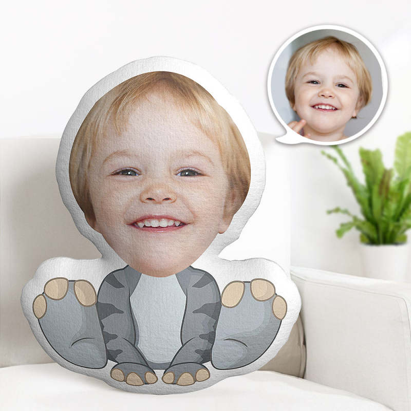 Custom Face Pillow Personalised Photo Pillow Striped Grey Dinosaur MiniMe Pillow Gifts for Kids
