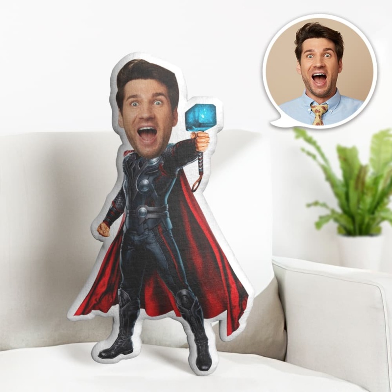 Custom Face Pillow Personalised Photo Pillow Thor Blue Hammer MiniMe Pillow Gifts for Him
