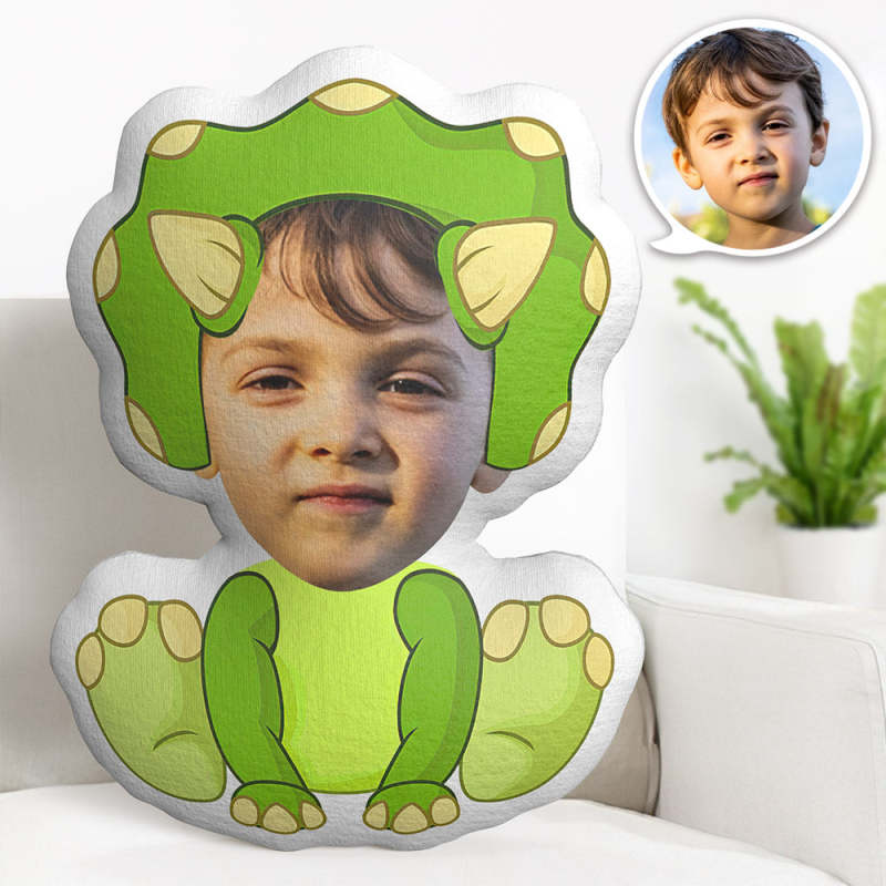 Custom Face Pillow Personalised Photo Pillow Two Horned Dinosaur MiniMe Pillow Gifts for Kids