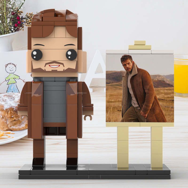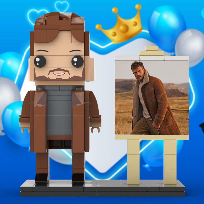 Home / Full Body Customizable 1 Person Cool Young Daddy In Long Brown Coat Custom Brick with Frame Figures Small Particle Block Toy Brick Me Figures For Father's Day
