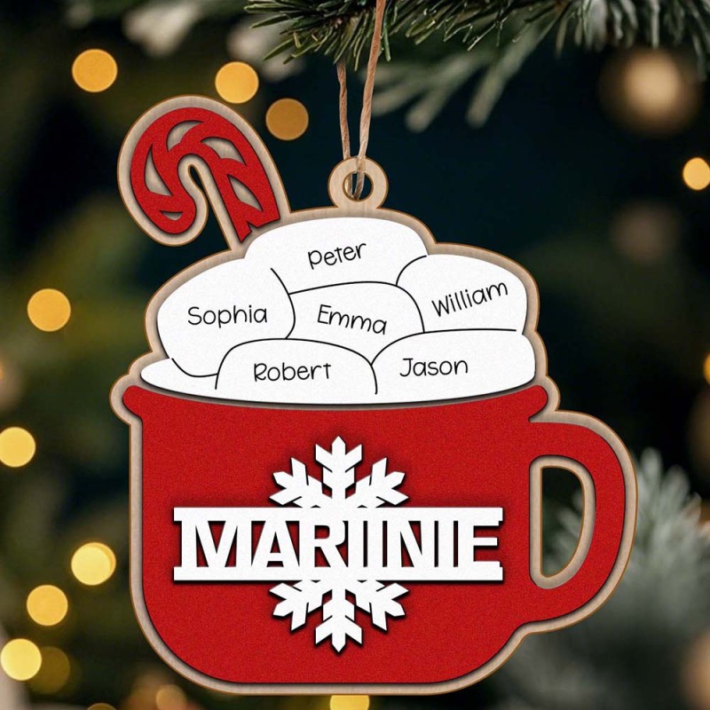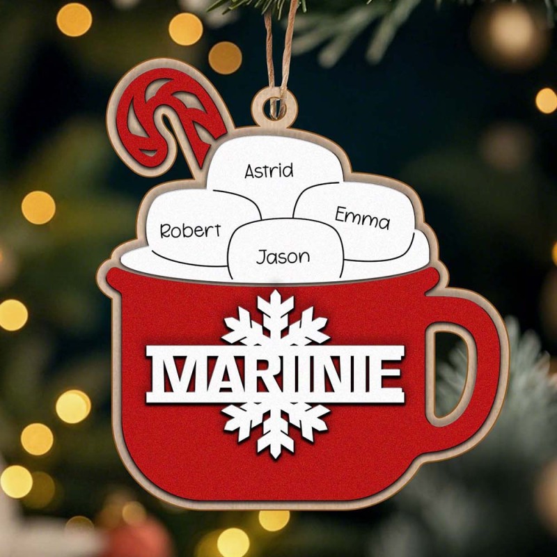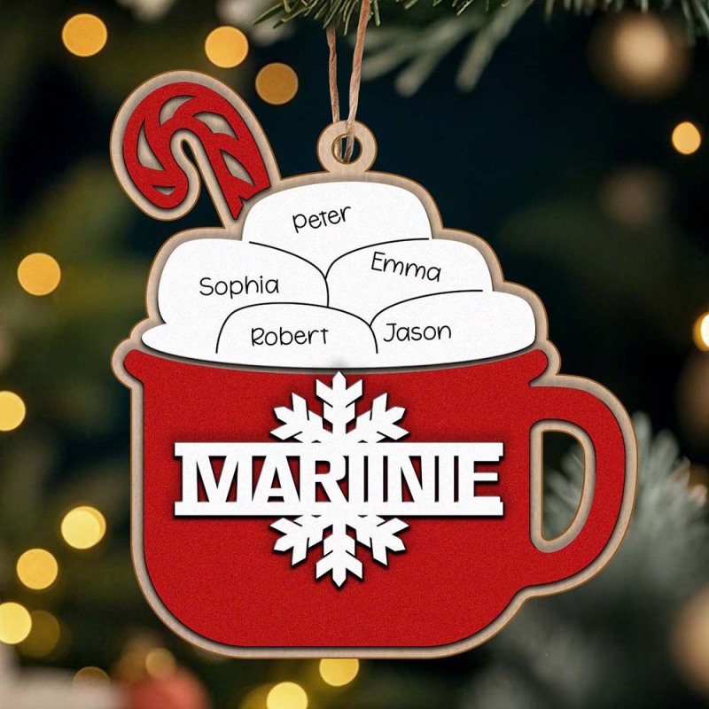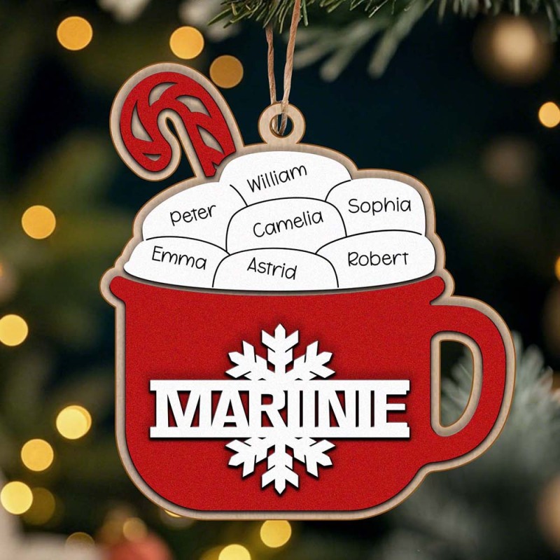 This personalized hot cocoa ornament is the perfect addition to your Christmas tree! Featuring your family's name, it makes for a thoughtful and unique gift. Enjoy a warm cup of cocoa as you celebrate the holiday season together. Order now for a festive and memorable touch.