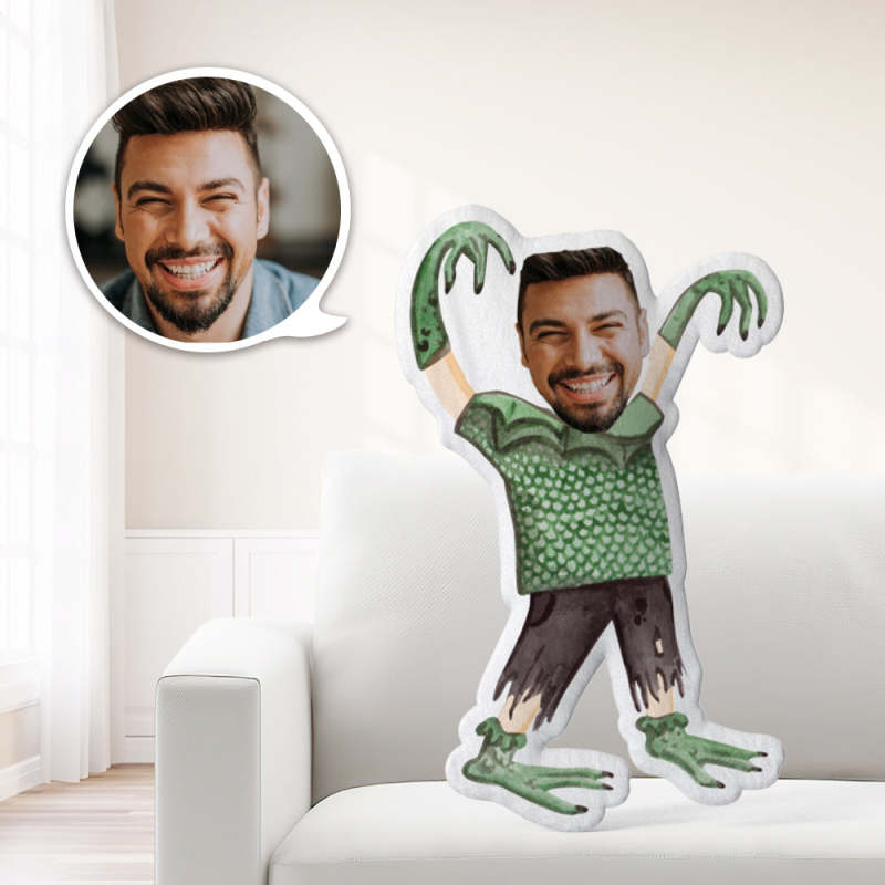 Photo Pillow Face Pillow Personalised Pillow Custom Pillow Minime Pillow Doll Green Dress Monster Halloween